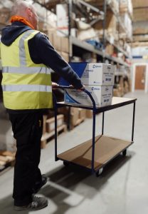 A British warehouse trolley producer makes warehouse trolleys to safe standards. All trolleys have a load capacity that should not be exceeded. Trolleys made from tubular steel by skilled metalworkers are designed to be safe under heavy use. Strong swivel casters make trolleys easy to manually move and steer.